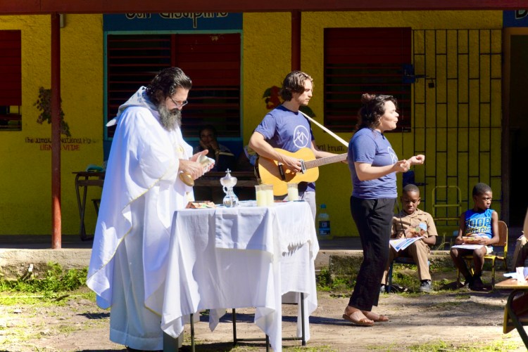 We arrived yesterday (Wednesday) after traveling both by air and land. We touched down in Montego Bay ~1pm then drove 3 hours east, from the resort side of Jamaica to “out country,” as they say here on the island. Though a long drive, we enjoyed seeing the beautiful, lush mountains of Jamaica as well as the Caribbean blue sea. We also enjoyed some delicious Jamaican patties along the way. We arrived at St. Theresa’s around 5:30pm and started with Mass followed by dinner, Holy Hour, and a planning session. By the time we settled down for the night, there was no running water (it shuts off here around 9pm, and our pump wasn’t working!), but we offered it up with gratitude and with hopeful expectation that God would resolve it by morning…and He did!